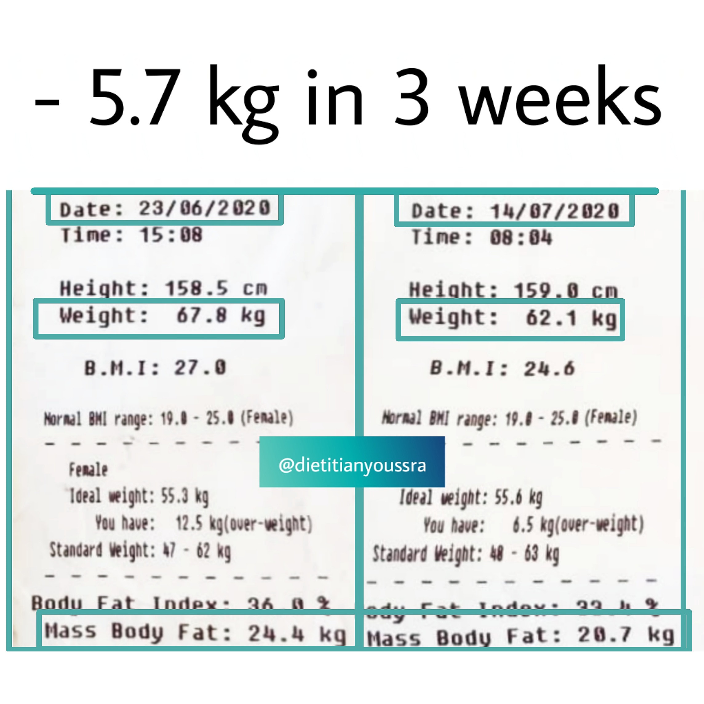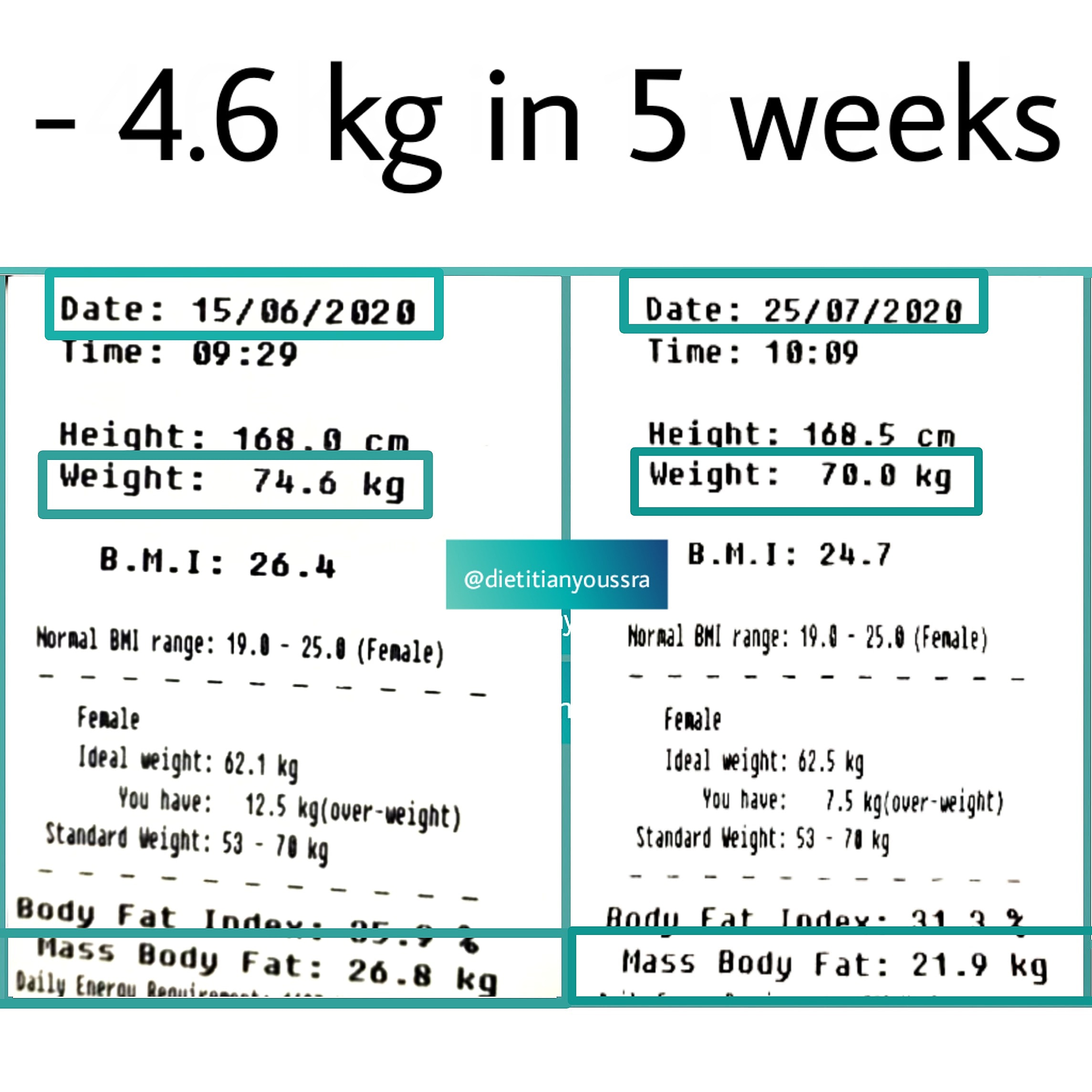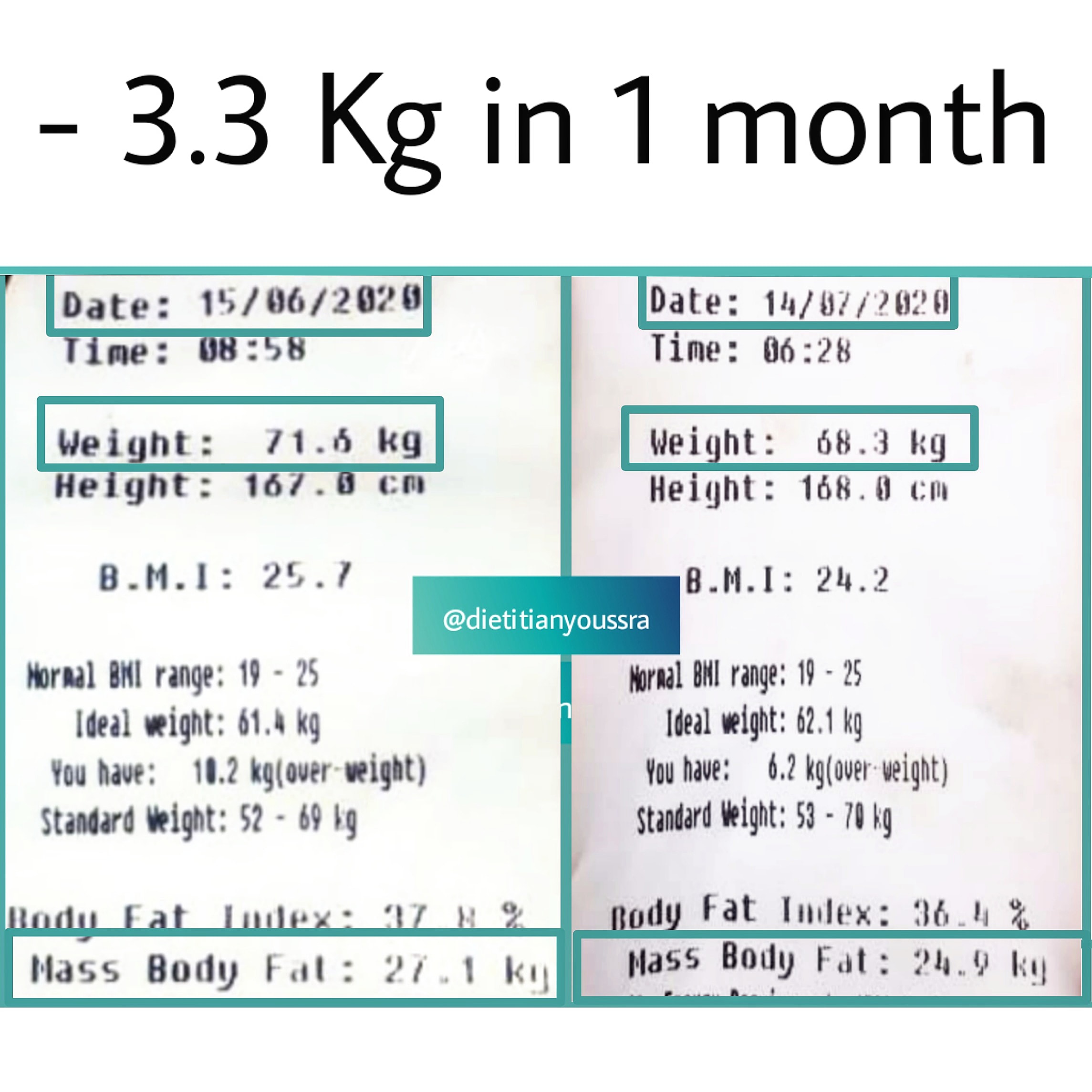 “Loosing 5 kg in 1 month never been that easy. Thanks to dietitian Youssra I am on my way to reach my ideal way”